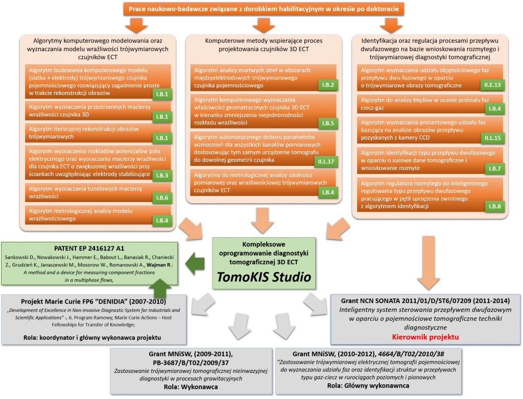 W 2011 wraz z dr hab. inż. Robertem Banasiakiem ukończyłem projektowanie oprogramowania o nazwie TomoKISStudio [Zał. 3 poz. II.L.17]. Zbudowana platforma programowo-sprzętowa jest kompleksowym narzędziem przeznaczonym dla systemów elektrycznej tomografii procesowej i jest podstawowym oprogramowaniem diagnostycznym w laboratorium tomografii procesowej. W procesie tworzenia tego oprogramowania samodzielnie opracowałem algorytmy odpowiedzialne za: